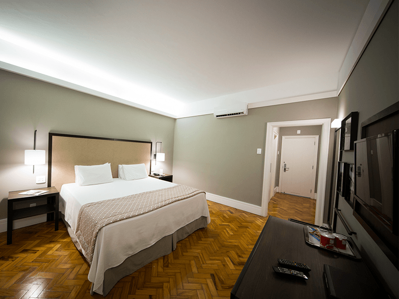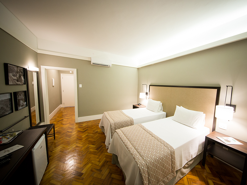 Quarto equipado com uma cama de casal Queen Size ou duas de solteiro.