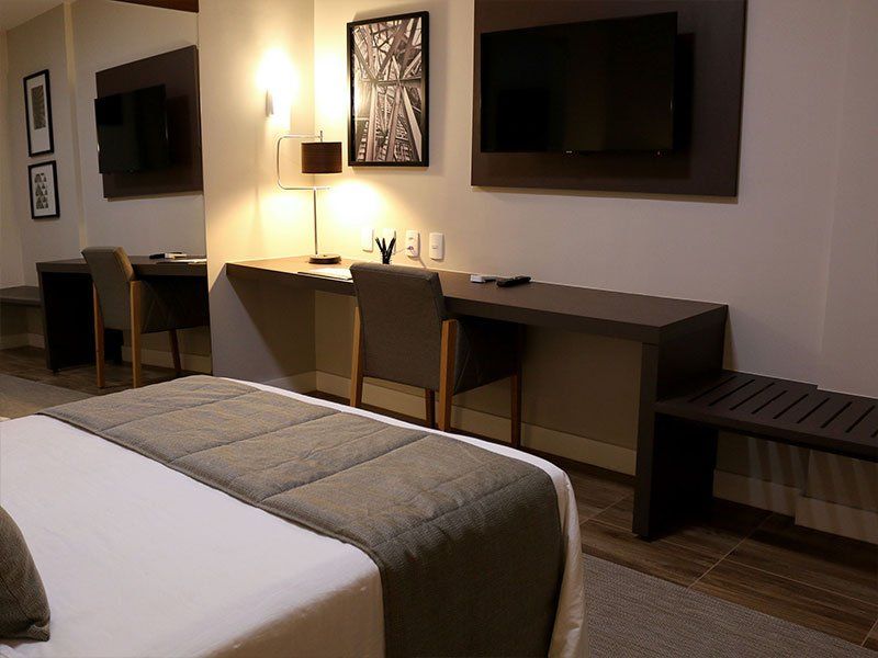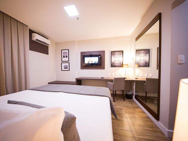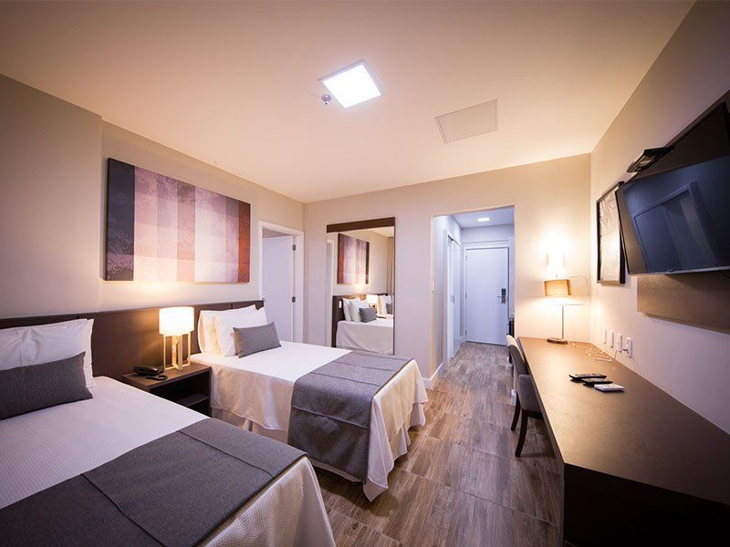 Conheça as acomodações dos nossos apartamentos Twin, ideal para sua viagem corporativa ficar muito mais confortável e prática!