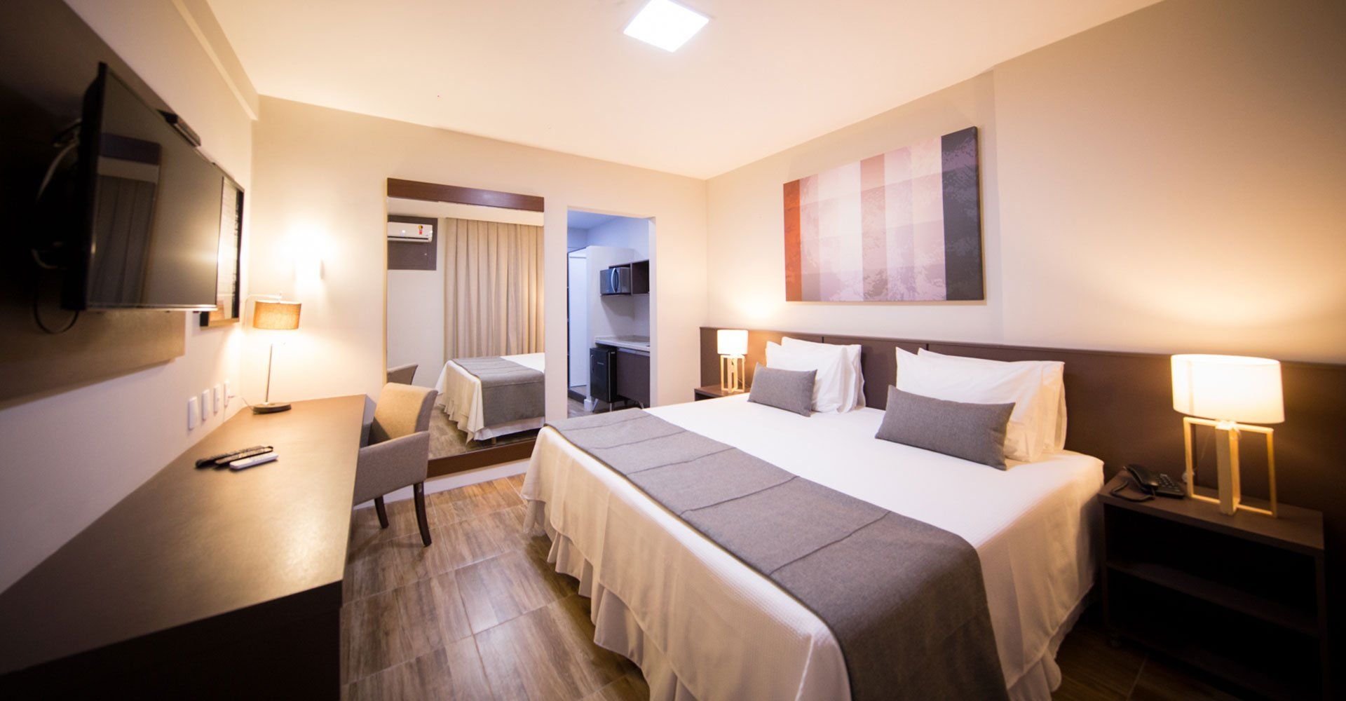 Conheça as acomodações dos nossos apartamentos de Casal, com decoração moderna e acolhedora para você aproveitar a sua estadia conosco.