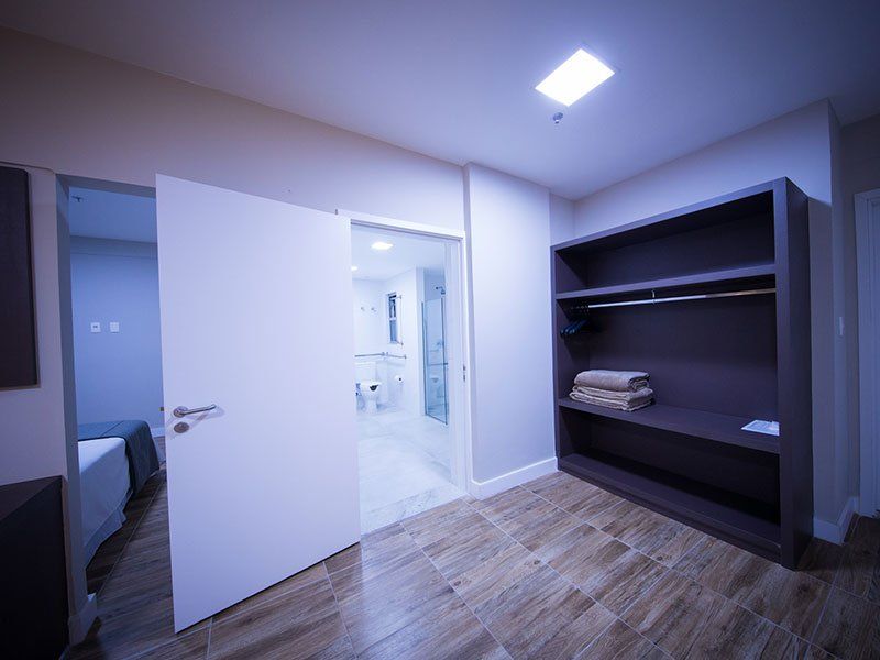 Quarto adaptado para atender com conforto e segurança hóspedes com mobilidade reduzida.