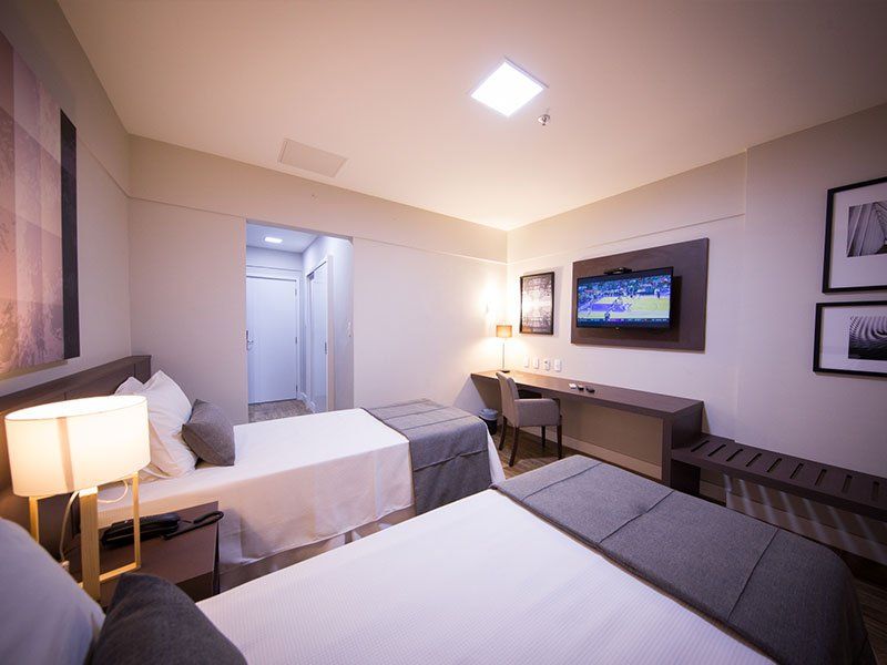 Conheça as acomodações dos nossos apartamentos Twin, ideal para sua viagem corporativa ficar muito mais confortável e prática!